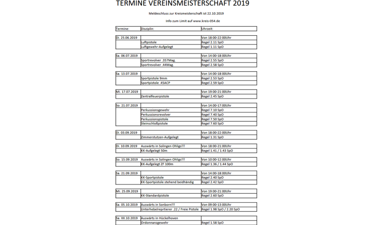 Am Freitag den 5. Juli 2019 erst ab 20 Uhr Schießbetrieb!